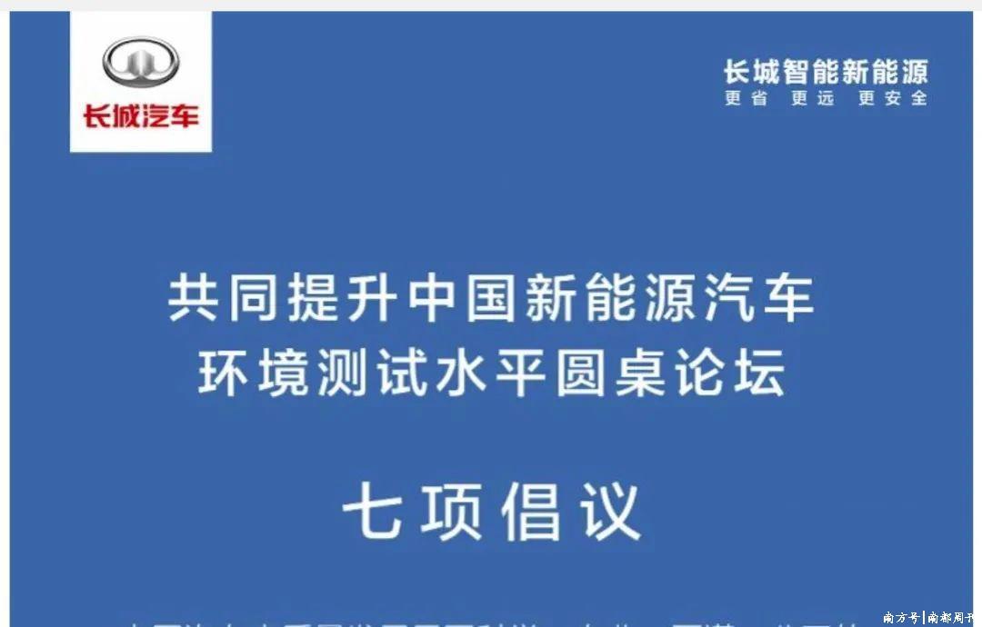 12月14日,长城汽车举行倡议对于“共同普及中国新动力汽车环境测试水平”的圆桌论坛。举止现场,长城汽车提倡了七项倡议,包括新动力汽车环境测试应成立严格模范认证,应有专科东说念主员提供专科技巧撑持等,并告示向全行业怒放扫数“新动力汽车测试平台”,倡议其他车企怒放测试资源,共同撑持中国汽车高质地发展和高质地测试,推动愈加专科、严谨的“新动力汽车环境测试模范”,号召早日出台。