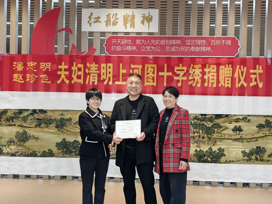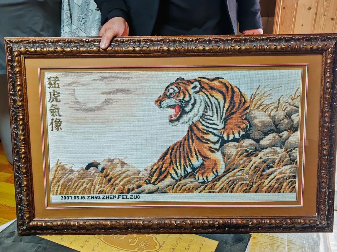 收到老婆俩捐赠的十字绣长卷