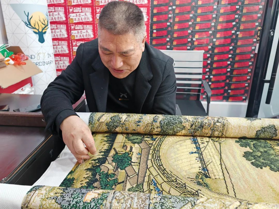 潘忠明带着这幅十字绣长卷