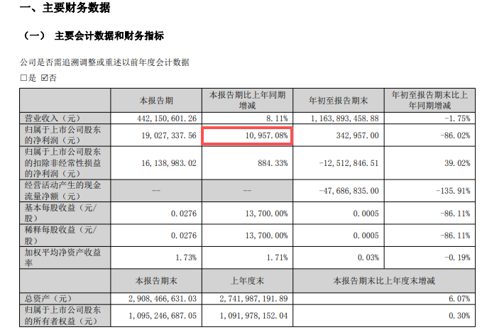 10月23日晚间,宜安科技发布的三季报自大,公司第三季度完好意思净利润1902.73万元,同比增长10957.08%。在上半年亏本1868.44万元的情况下,公司前三季度的净利润为34.3万元。